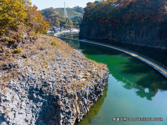 漢灘江(ハンタンガン) ハヌルタリ(空の橋)は「愛の不時着」、「キム秘書はいったい、なぜ?」などのロケ地として有名な場所です。吊り橋の一部がガラス張りになっているスリル満点の場所もあり、高さ50mに位置する橋から漢灘江一帯を一目で楽しめます。近くにあるピドゥルギナン瀑布も色んなドラマのロケ地で美しさと学術的な価値を認められて天然記念物に指定されています。