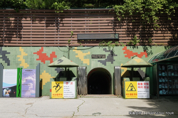 第2トンネルは1975年3月24日、江原道鉄原の北側13kmである軍事境界線の南方900m地点で発見され、幅2.1m、高さ2m、深さ地下50~160m、長さ約3.5Kmの岩石層アーチ型の構造物であり、1時間に約3万人の兵力と野砲などの重火器が移動できるトンネルです。現在は500m区間までは観覧が可能し、DMZ地域の南方限界線と最も密接な位置まで見えて、茂った茂みや韓国のGOP鉄条網、北韓軍GPと警戒所、6.25韓国戦争の激戦地ラクダ高地、金日成(キム·イルソン)高地などを最寄りから眺望できます。DMZツアー中、冬場は渡り鳥の越冬到来地で天然記念物の丹頂鶴が群れをなして飛び回る群舞のような姿を見えるかも知りません。