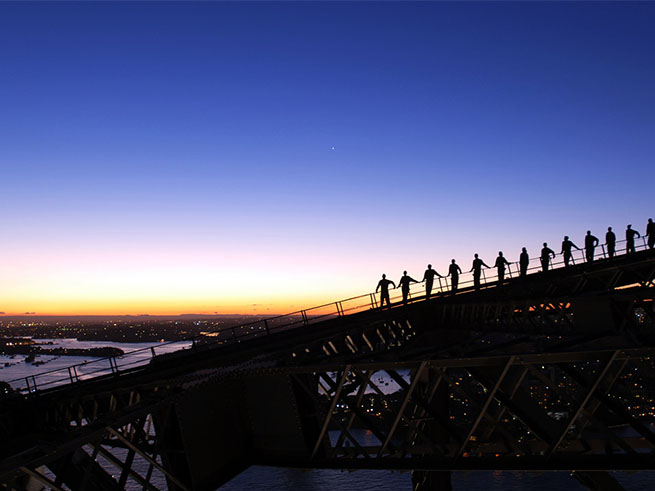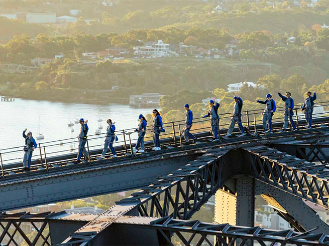 シドニーを象徴するハーバーブリッジを、自分の足で登る特別な体験「ブリッジクライム・トワイライトタイム」。