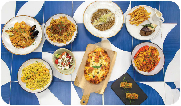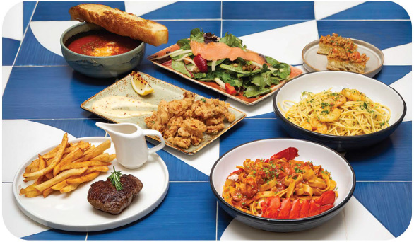 ディナーは地中海沿岸の料理を提供するレストラン『アネモス(ANEMOS)』にて。ギリシャ語で”風”を意味する、その名の通り、店内は地中海をイメージした白やブルーの爽やかなインテリアとなっています。セットディナーをお楽しみください。