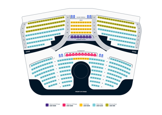 プランによりショーのお席が異なります。「VIPプラン」のお客様はショー終了後にショー出演者と記念撮影が可能です。「ダイヤモンドVIPプラン」はさらに、ショー開演前にVIPラウンジでシャンパンサービスをご利用頂けます。またショー終了後にバックステージツアーへご案内いたします。