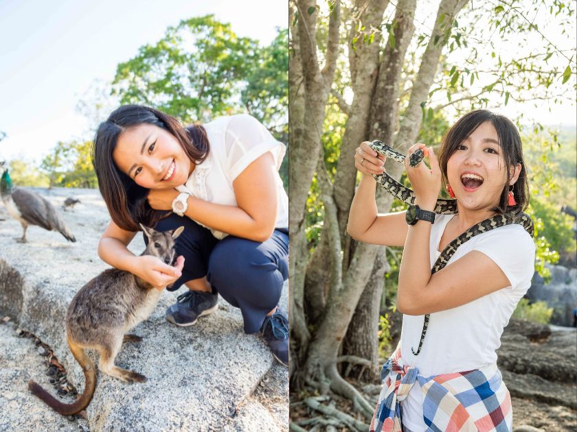 高原地帯を抜けてケアンズのアウトバックが見られるグラネットゴージへ。 この国立公園に生息する小さなロックワラビーに餌付けすることができます。 時にはお母さんのおなかの袋の中に入った赤ちゃんワラビーに出会えることも! |