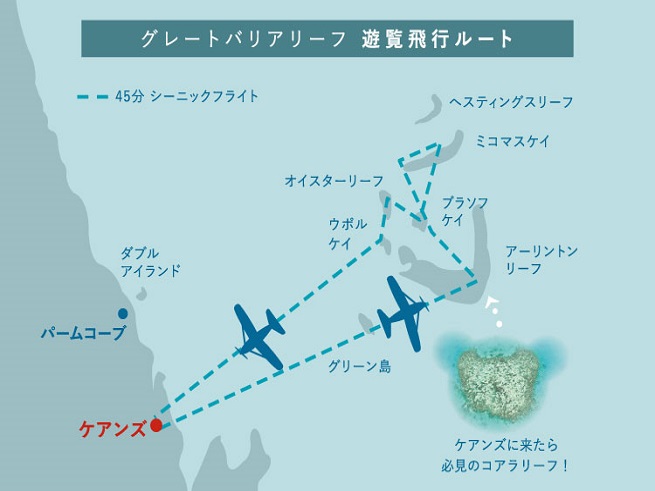 グリーン島とアウターグレートバリアリーフ遊覧飛行(飛行時間 約40-45分)