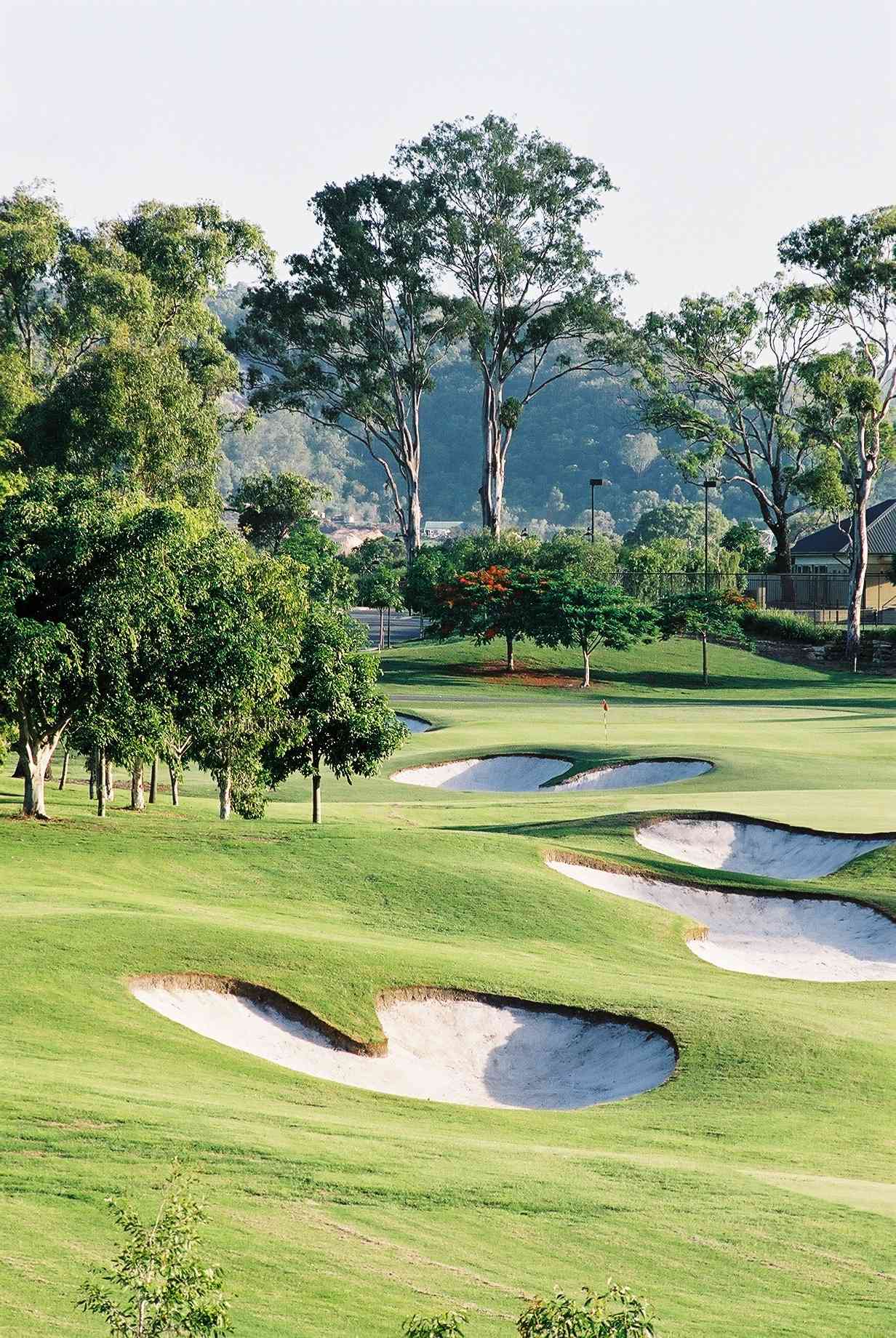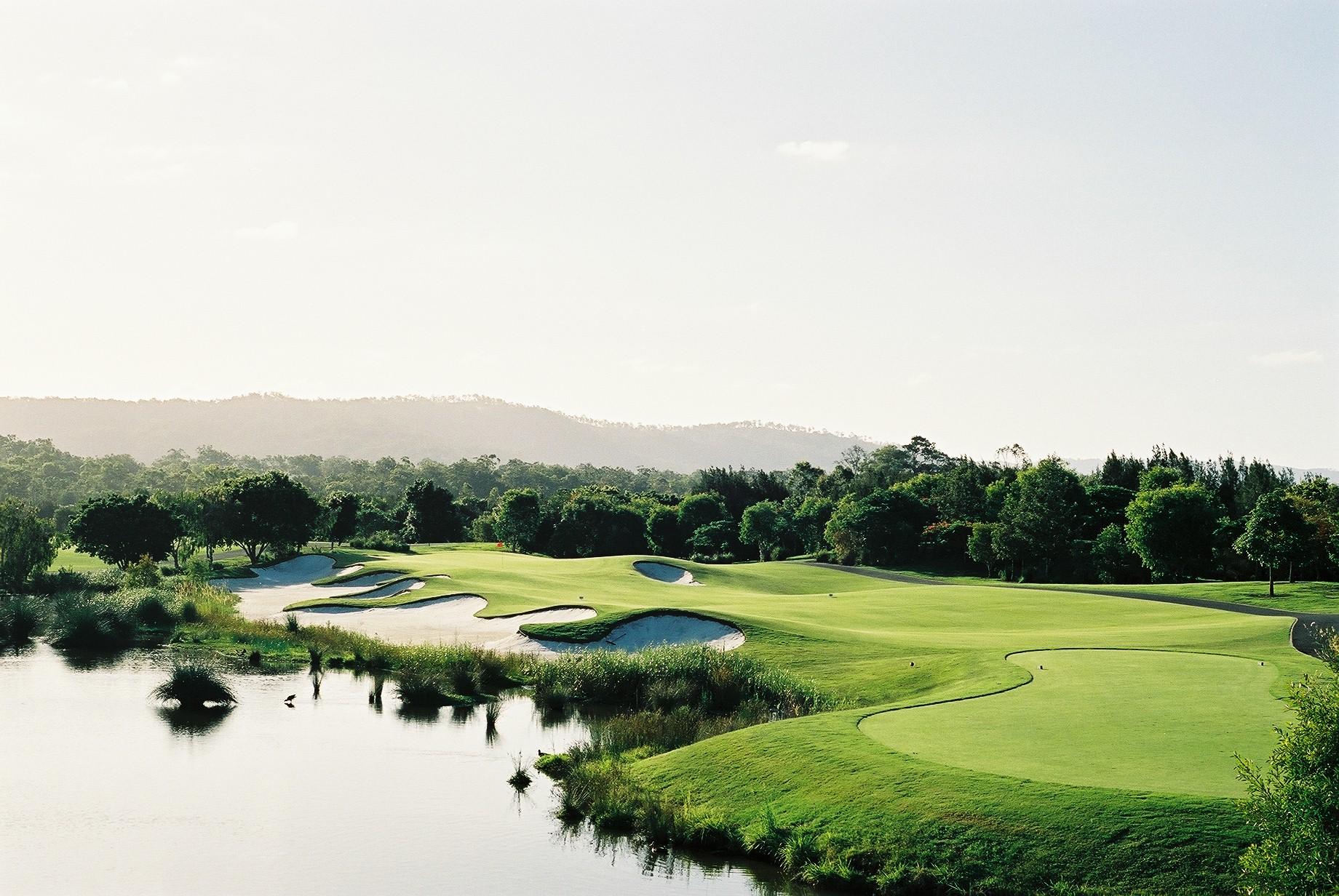 グレッグ・ノーマン設計のチャンピオンコースです。ゴルフ場が入る65ヘクタールの広大なエリアは湿地帯で、カモやシラサギなど野鳥の宝庫。ラウンド中はヒンターランドの山々の景色を堪能しながら、のどかな雰囲気の中でプレイを楽しんでください。コースは、リンクスを思わせるアゴが高いバンカーがフェアウェイの要所にあり、難度が高いドライバーショットが求められるホールが多いです。グリーンは、ゴールドコーストで数少ないベントグリーンを使用、適度なアンジュレーションでベントグリーンならではのボールの転がりを楽しめます。