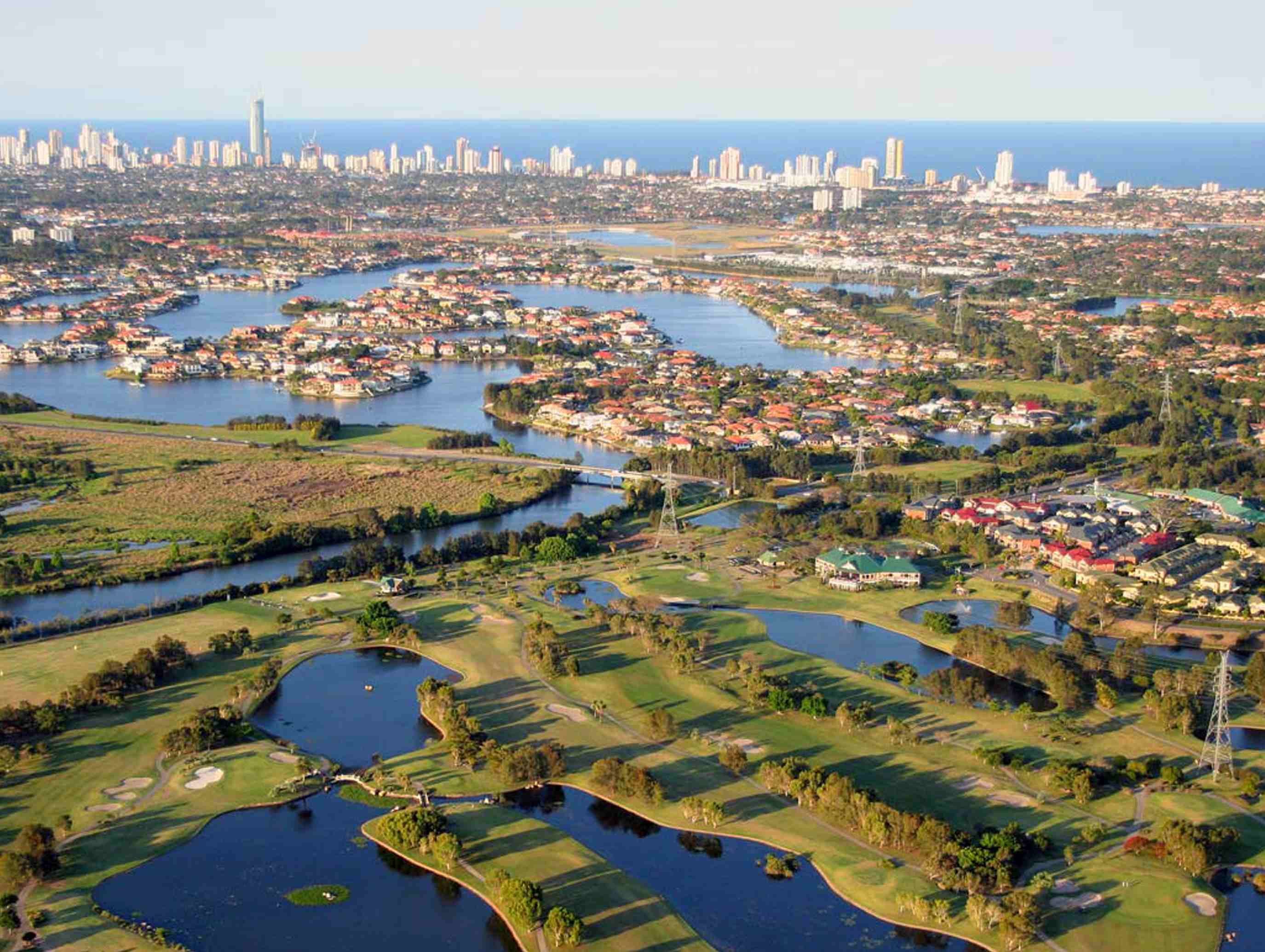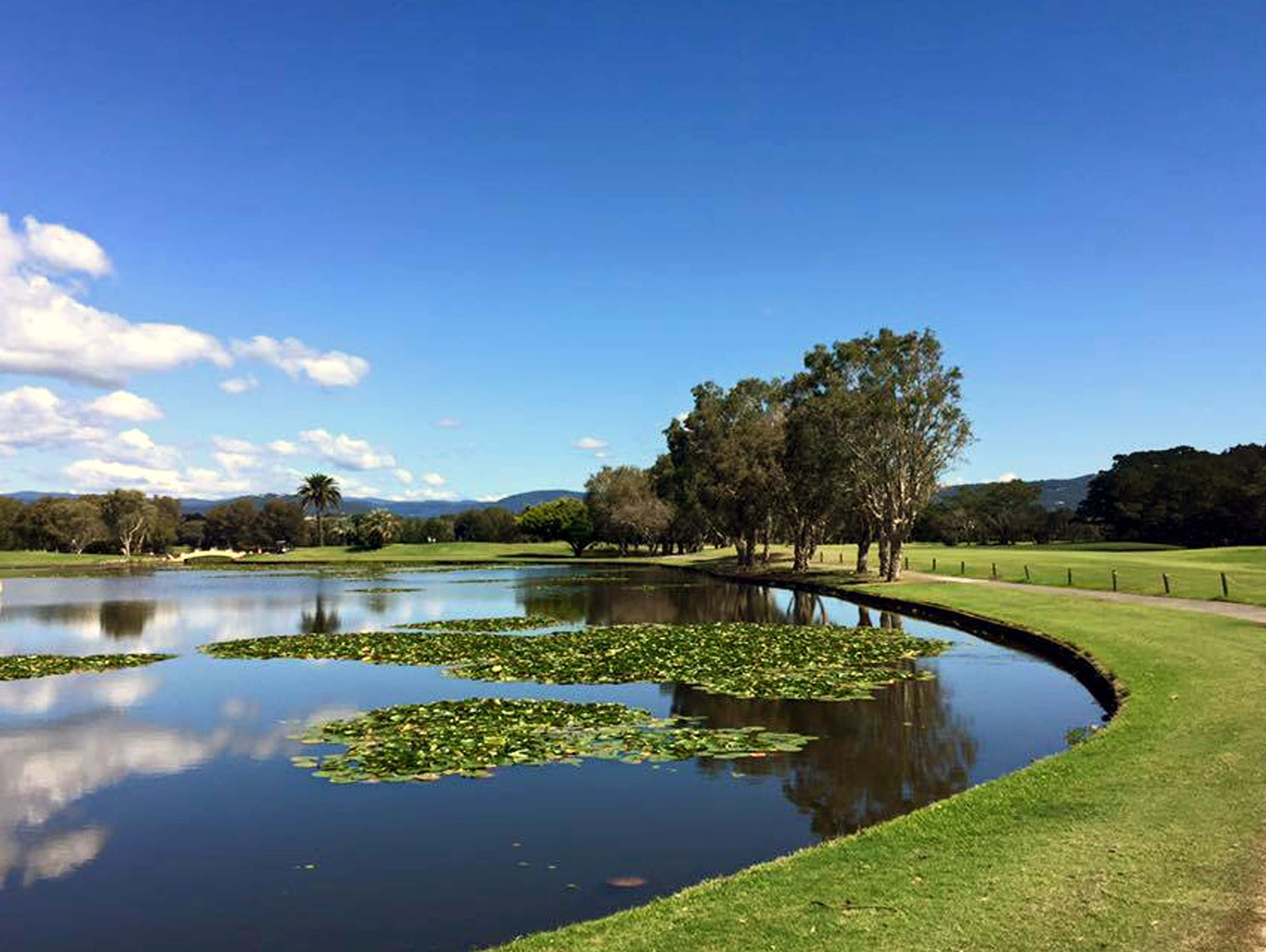 コロニアル調の雰囲気があるクラブハウスが印象的なゴルフクラブです。ゴルフ場は、平坦な盆地に位置しておりサーファーズパラダイスの高層ビルやヒンターランドの山々を眺めながら気持ちよくラウンドできます。コースレイアウトは、18ホール中16ホールが池に絡みスリリングなショットを楽しめます。フラットなフェアウェイは、コース脇のブッシュや森林が少くないのでボールを見失うことがなく、気持ちよくドライバーを振れます。コースを遮る物がなく、ラウンド中は風に影響されることが多いのでクラブ選択がスコアアップのポイントになるでしょう。
