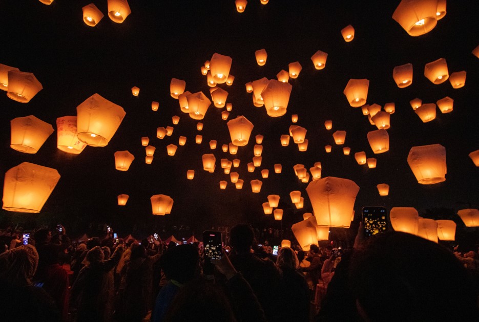 無数の天燈を一斉に飛ばし、夜空に輝く暖かい光に包まれる幻想的で壮観な光景は大型イベントならでは!