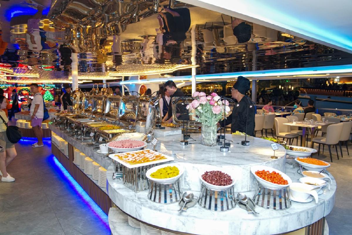 クルーズ船出航 夕景を見ながらビュッフェをお楽しみいただけます |