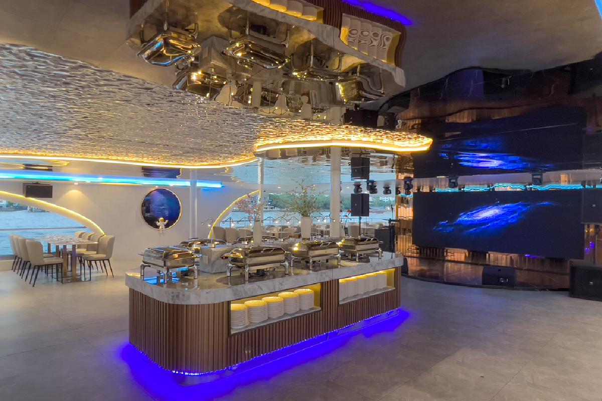 モダンで豪華な装飾が施されている船は、夜景をパノラマビューで楽しめるデッキフロアだけでなく、エアコン付きのフロアもあります。