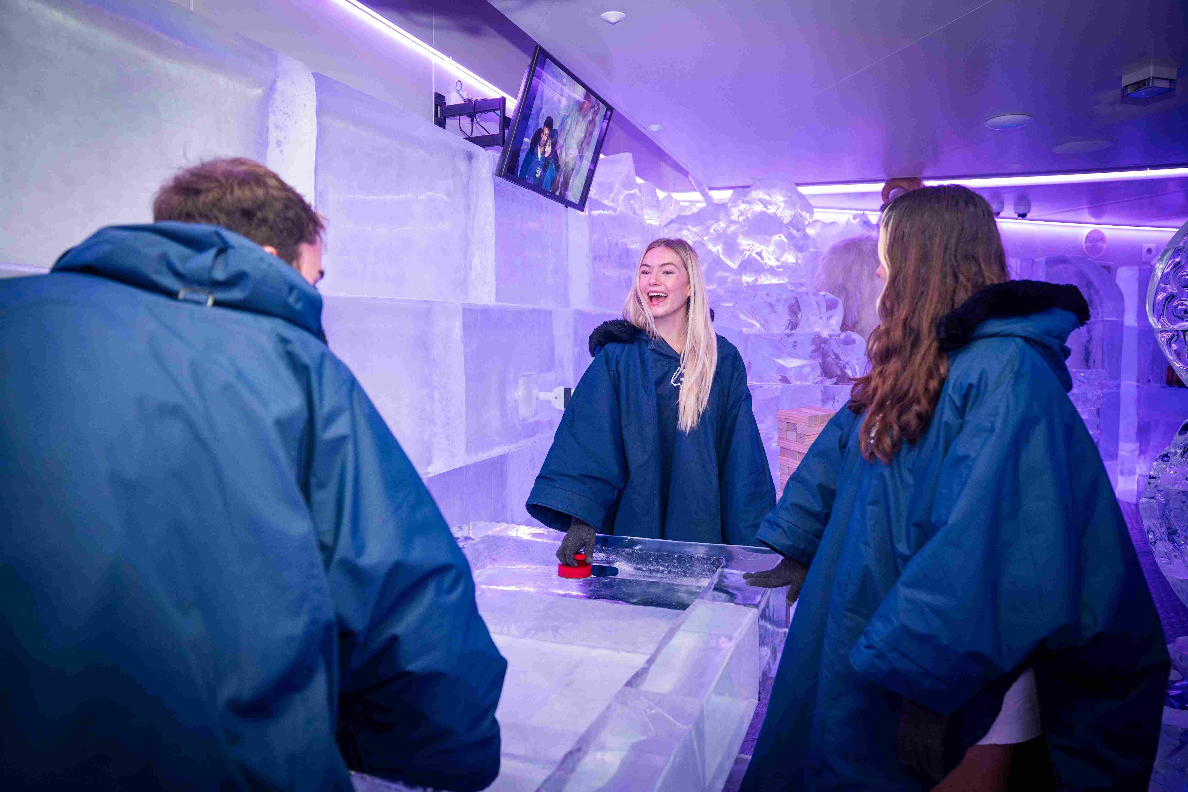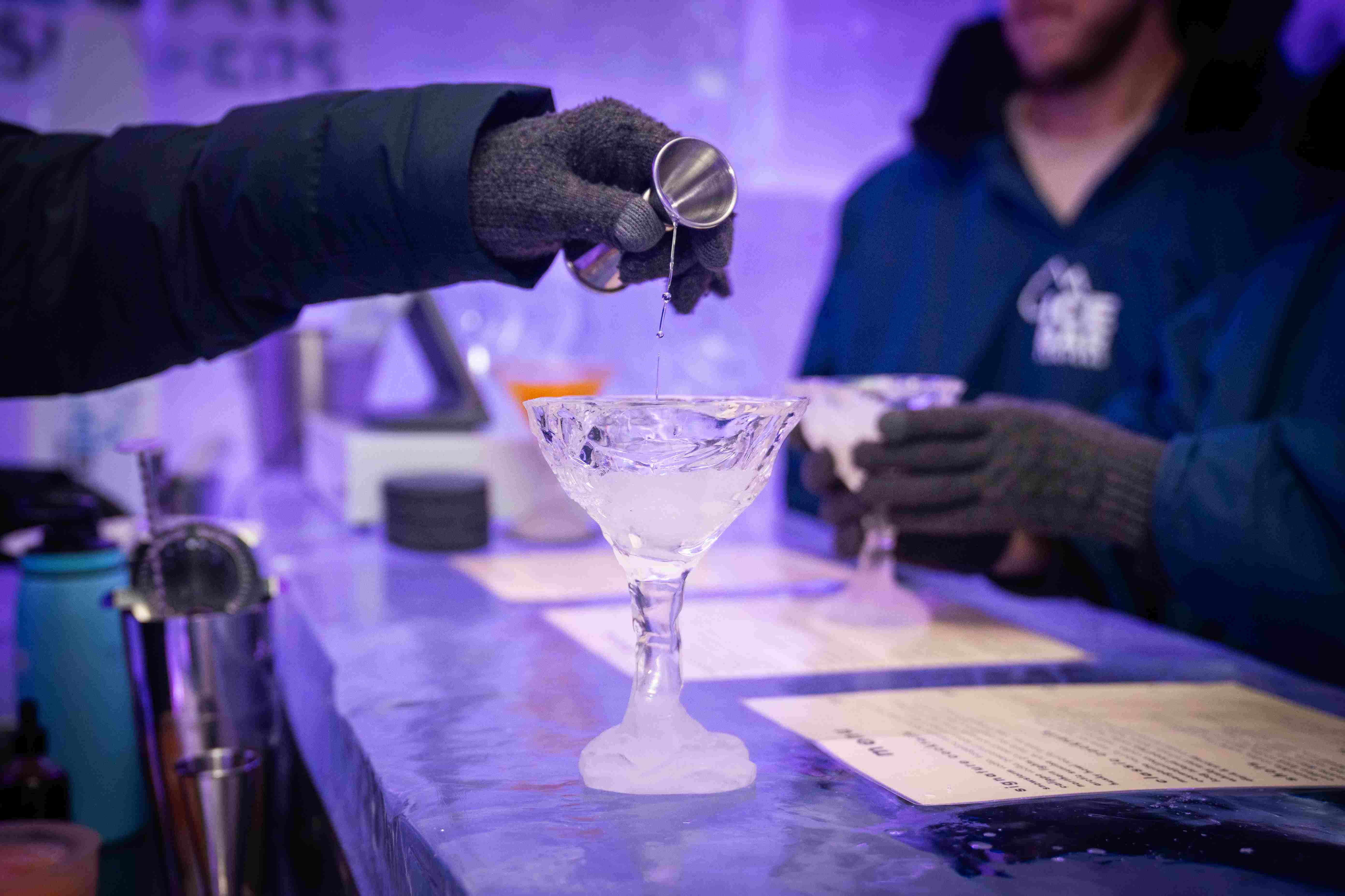 40 トンを超える氷があるこの冬のワンダーランドは、まさに目を見張るものがあります。椅子も氷でできています。氷の彫刻と街で最もクールなバー!