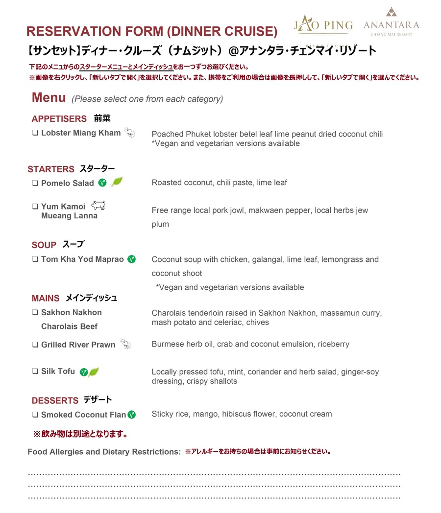 ジャオピン クルーズ(アフタヌーンティー/サンセット/ディナー)