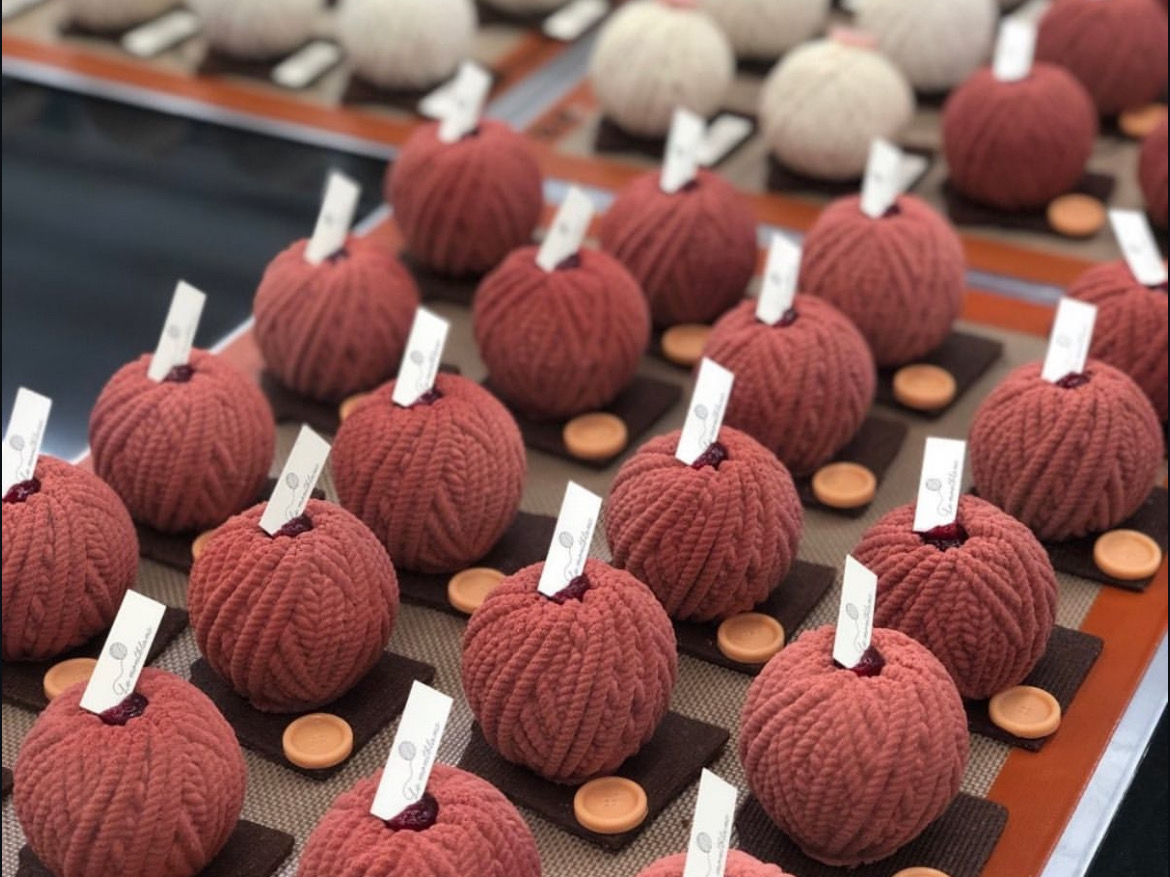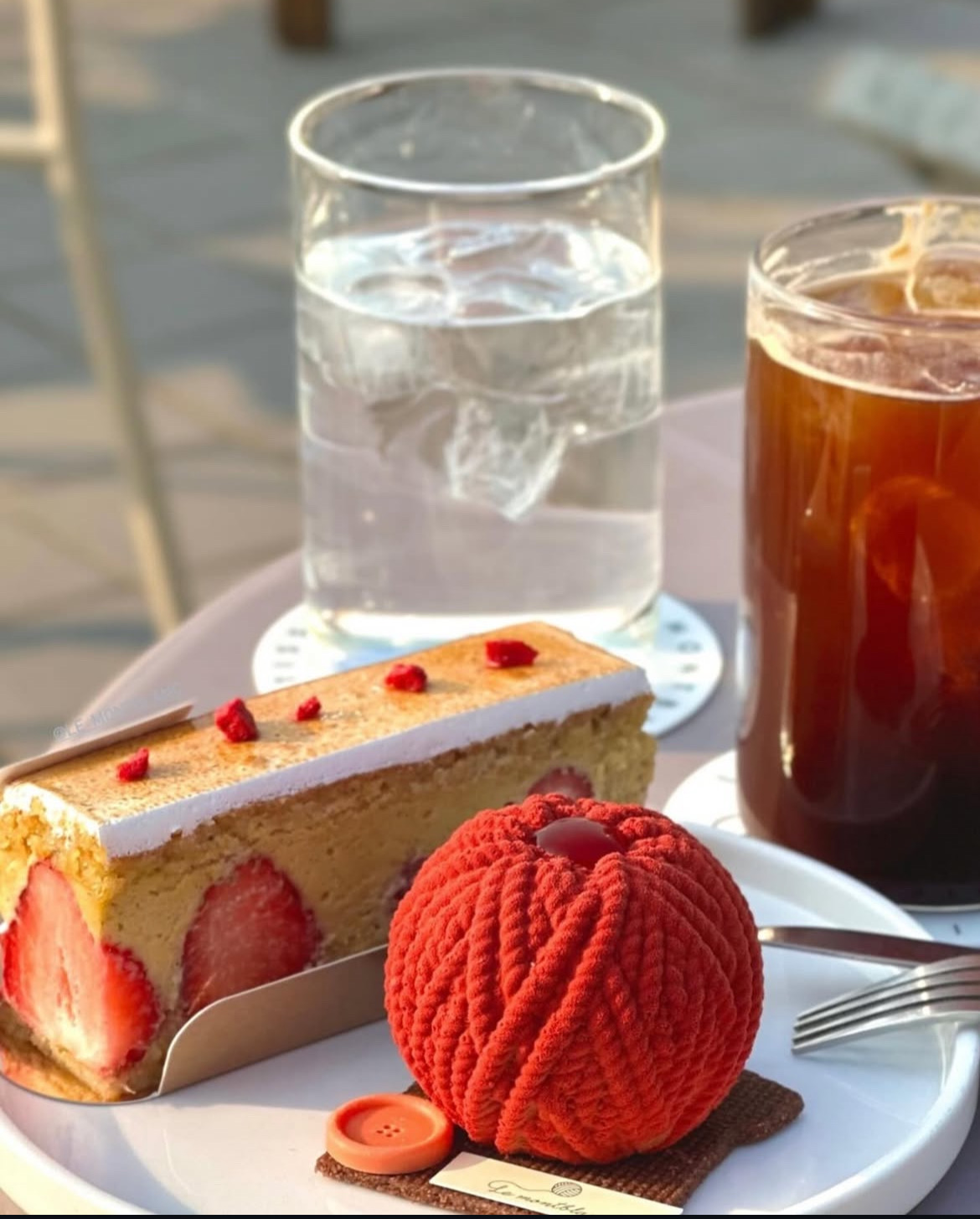 この店のシグネチャー毛糸ケーキを楽しめます!