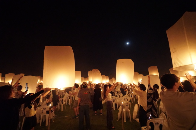 健康・幸福など様々な願いを込め、満月の夜空にランタンを放ちましょう。