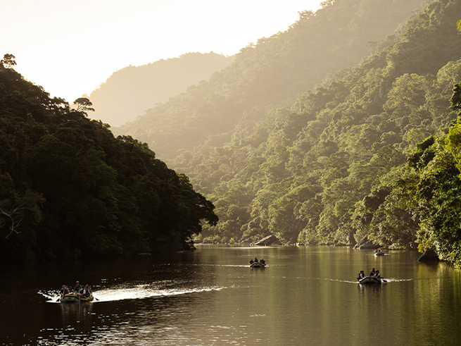 世界遺産にも登録されている熱帯雨林の中を流れるバロン川を、インストラクターとともにゴムボートで下る爽快なリバーアドベンチャーです。