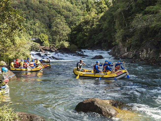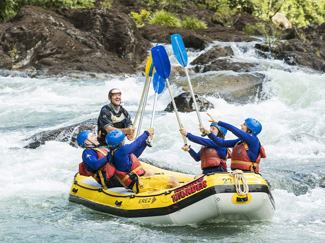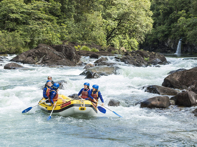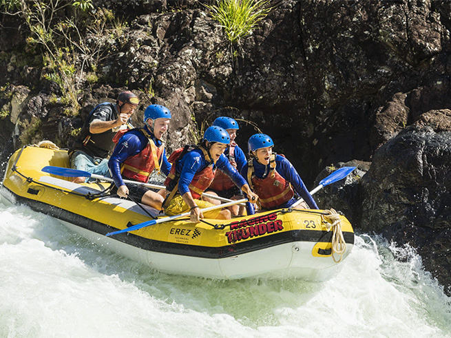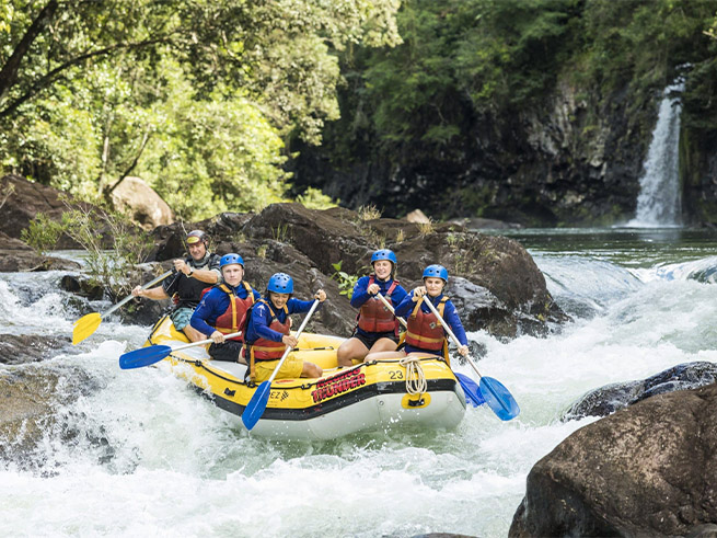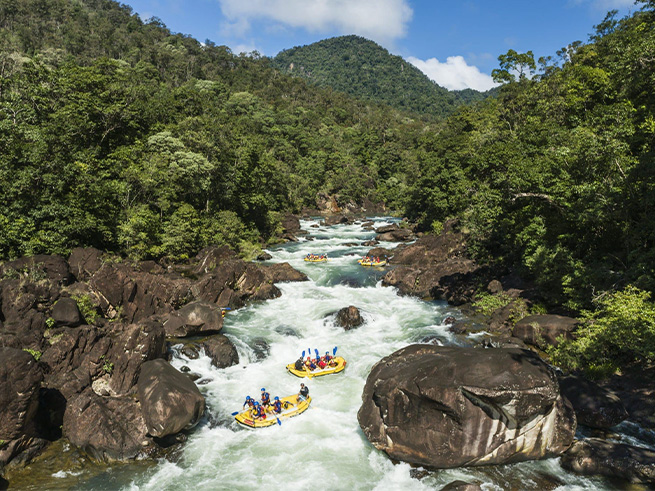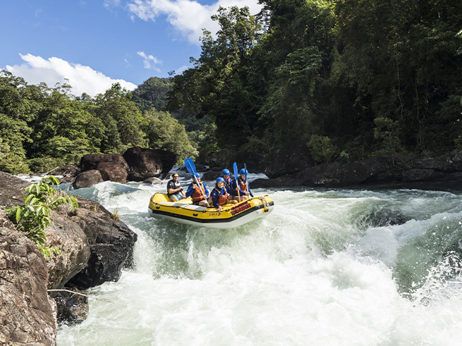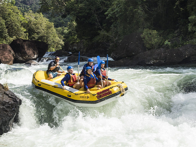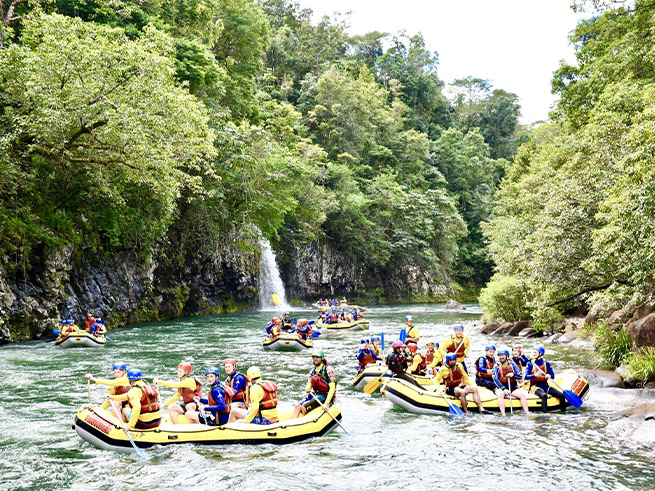 ケアンズ近郊で本格的なラフティングを楽しみたい方におすすめのタリー川フルデイラフティングツアー。