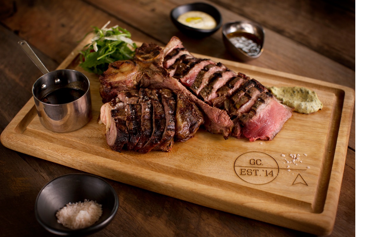 メニュー ブレッドボード(ディップ付)、グリーンサラダ、1kg Tボーンステーキ、シェフ特選デザートプラッター ※すべてシェアメニューとなり、予約は2名からになります。 |