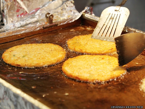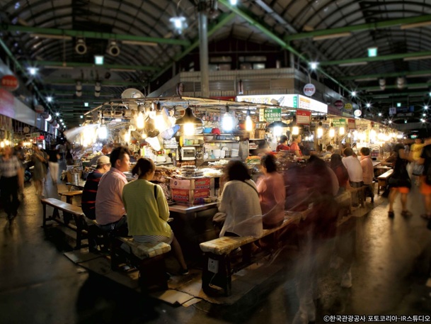 昼食:広蔵市場の自由食事 広蔵市場(クァンジャンシジャン)のご案内、自由食事 100年の伝統を持つ総合市場、広蔵市場のおすすめ:ユッケ、チヂミ、クァベギなど |