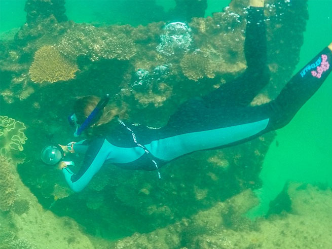 神秘的な沈没船の近くでするシュノーケリングは日本では体験できない特別な思い出になること間違いなし!