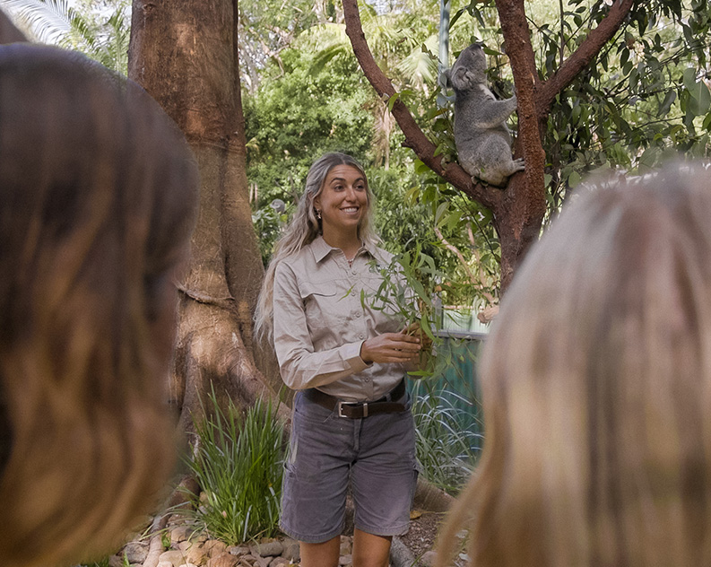 Koala Connections は、カランビン・ワイルドライフ・サンクチュアリで暮らすコアラたちを、実際の生息エリア内で間近に撮影できる、ここだけの特別体験です。
