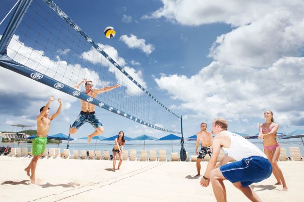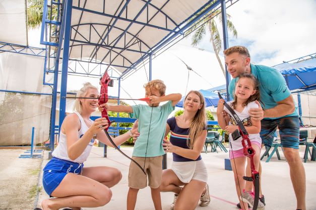 無料アクティビティメニュー:泳げる水族館(身長120cm以上)、ウィンドサーフィン(身長120cm以上)、ウォータースライダー、水中バスケットボール、トランポリン(体重14~108kg)、パターゴルフ、テニス、カヤック/セイリング、水中バレーボール、水中エアロビクス、アーチェリー(身長120cm以上)、バトミントン