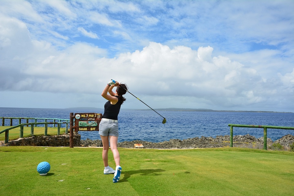 リゾートならではの広いフェアウェイ、そして海越え2ホールとビーチを活かした海岸沿い3ホールの景色は日本では絶対味わえない景観です!