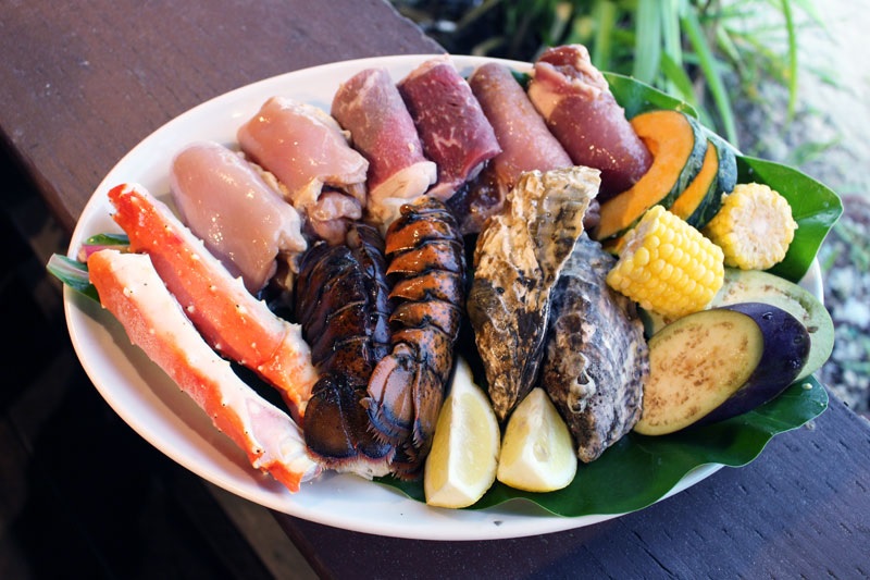 | 料金に含まれるサービス | <<大人メニュー>> ロブスターテール、キングクラブレッグ、サーロインステーキ、チキン、オイスター、野菜、サラダバー食べ放題、生ビール・ソーダ・アイスティー飲み放題 <<キッズメニュー>> サーロインステーキ、ホットドック(ウインナーソーセージ)、海老、野菜、アイスクリーム、サラダバー食べ放題、ソーダ・アイスティー飲み放題 |