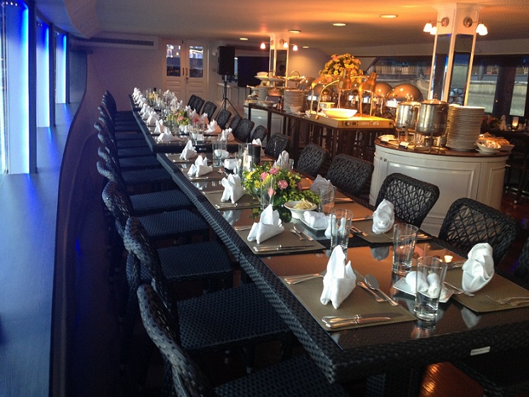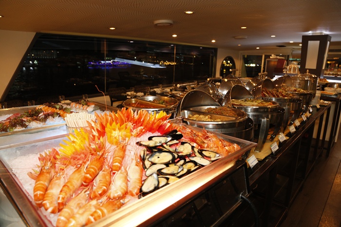 シャングリ・ラ・ホテル・バンコクが運航するディナー・クルーズ「ホライズン・ディナー・クルーズ」。ディナービュッフェの美味しさやサービスの良さで人気高いクルーズです。