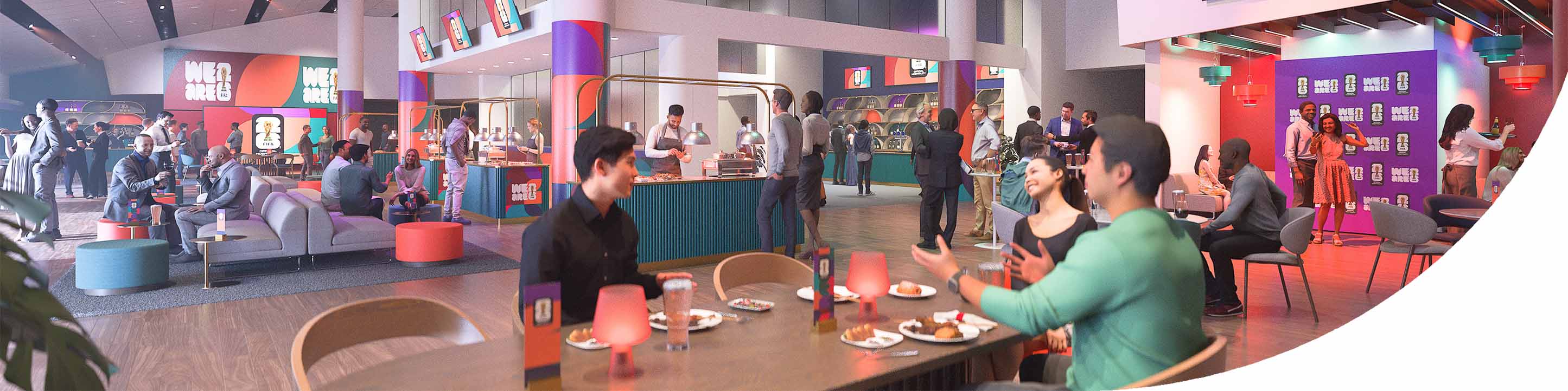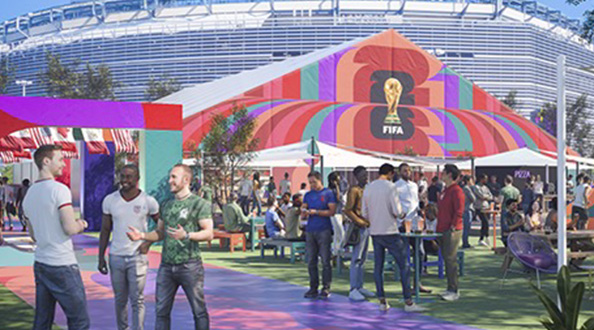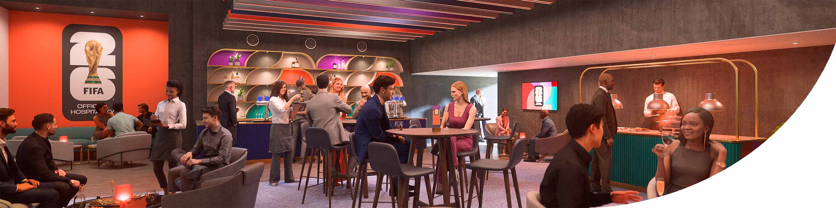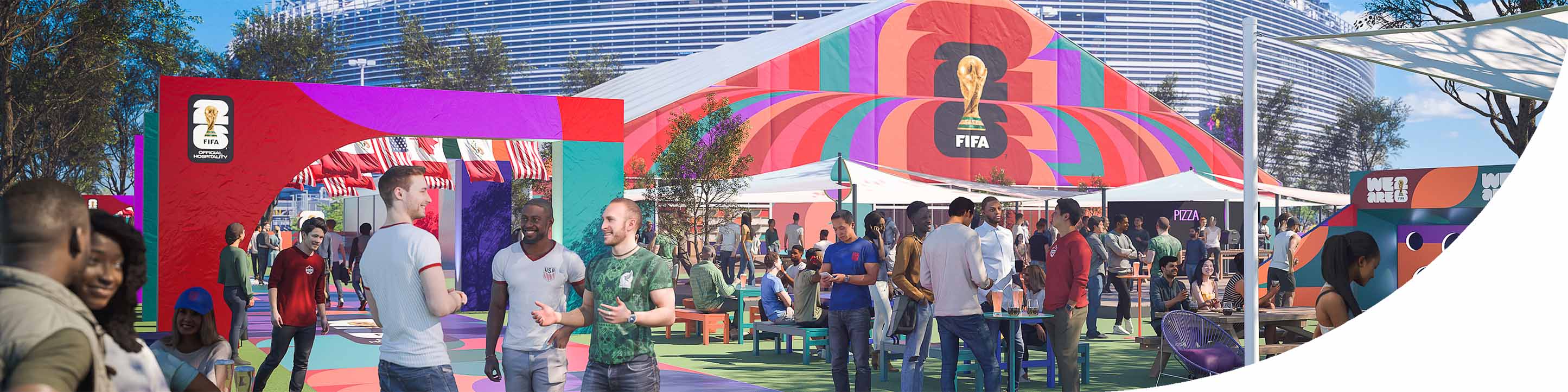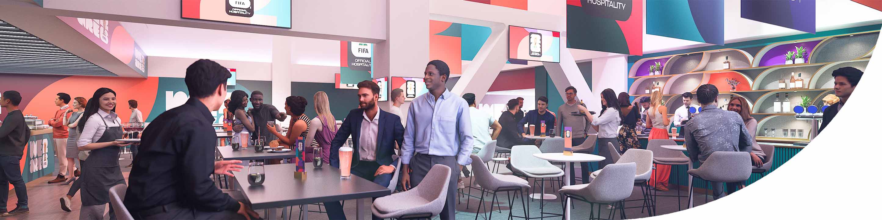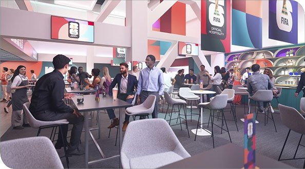 FIFAパビリオンへようこそ。スタジアムの象徴的な景色を背にした特別な空間で、安心・安全なエリアの中、試合の興奮がピッチの外まで広がります。