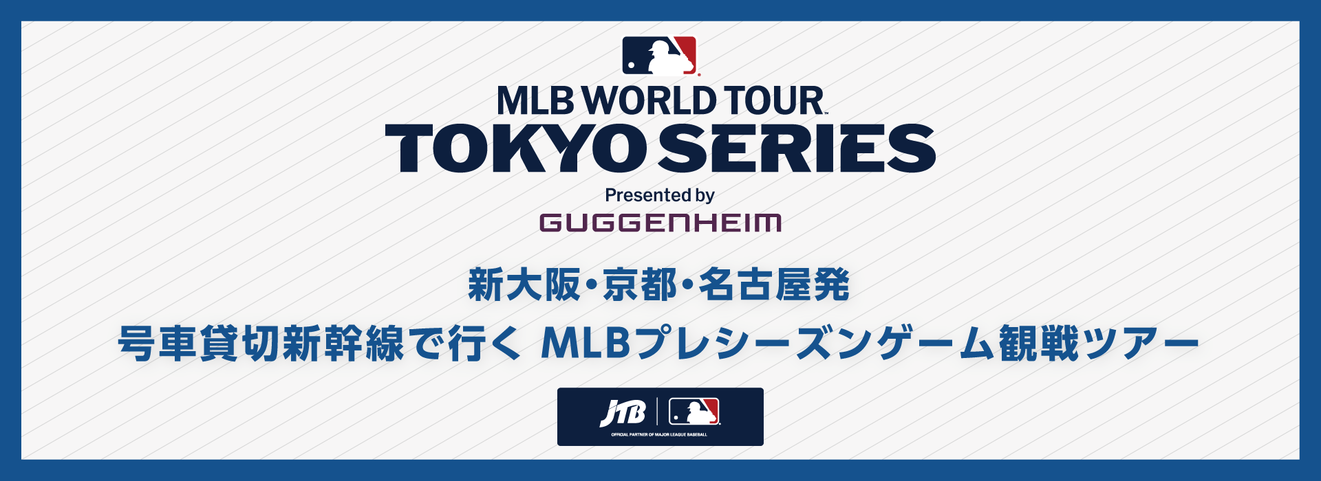 ご自宅または各地 ------ (各自移動・各自ご負担) ------ 新大阪駅/京都駅/名古屋駅 新大阪駅(6:08発) ------ 京都駅(6:22発) ------ 名古屋駅(6:56発) ------ (のぞみ号 貸切車両) ------ 東京駅(8:33着) 東京駅 ------ (各自移動・各自ご負担) ------ 東京ドーム ※JR乗車券は東京都区内(東京ドーム最寄りのJR水道橋駅まで有効な乗車券) 「ロサンゼルス・ドジャース vs 阪神タイガース」 9:00 開場(予定) 12:00 試合開始(予定) 東京ドーム ------ (各自移動・各自ご負担) ------ ご自宅または各地 |