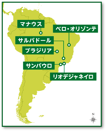 Rio de Janeiro, Sao Paulo, Belo Holizonte, Brasilia, Salvador, Manaus |