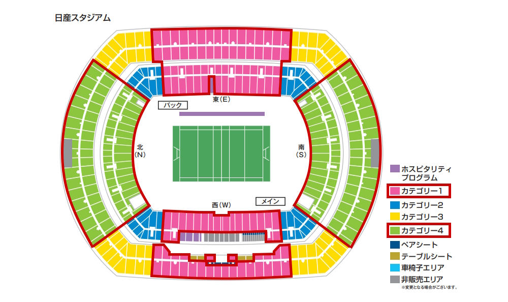 | 観戦エリア | カテゴリー1 | カテゴリー1 | カテゴリー4 | カテゴリー4 | |