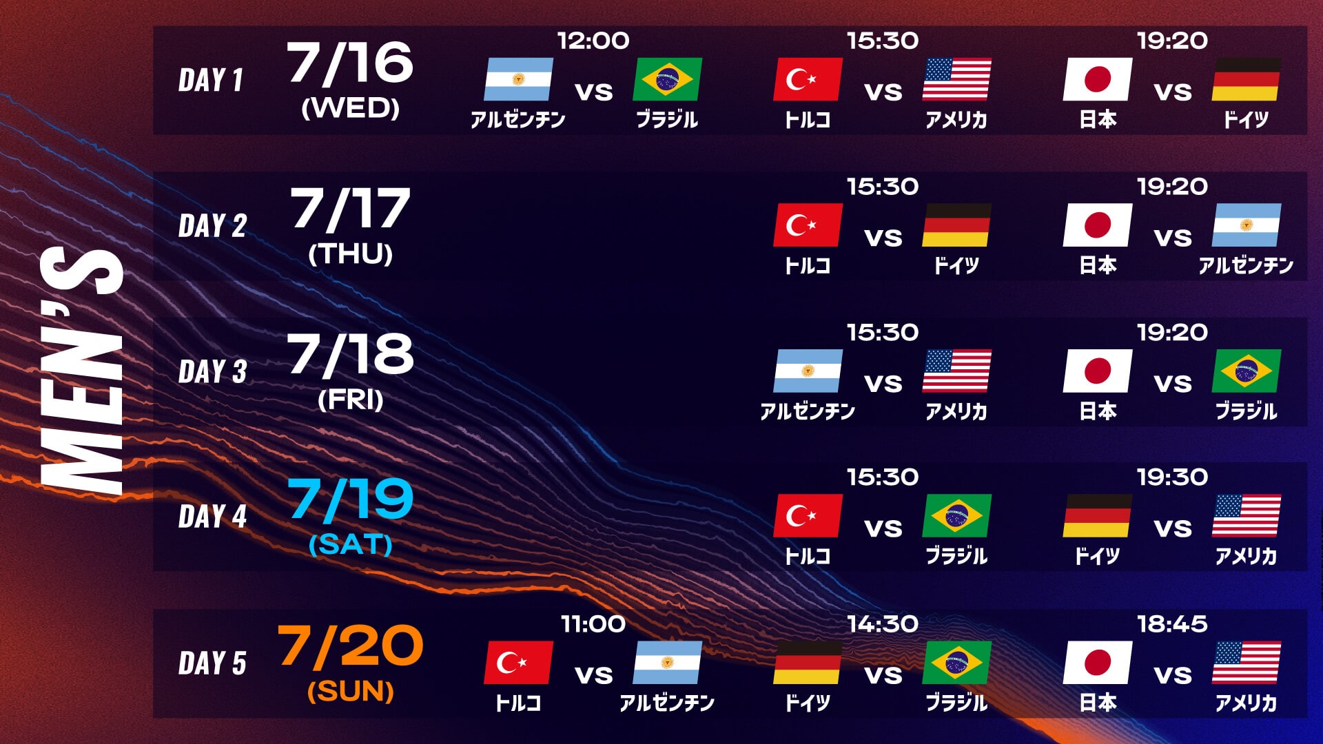 日本戦 男子(全日程共通)