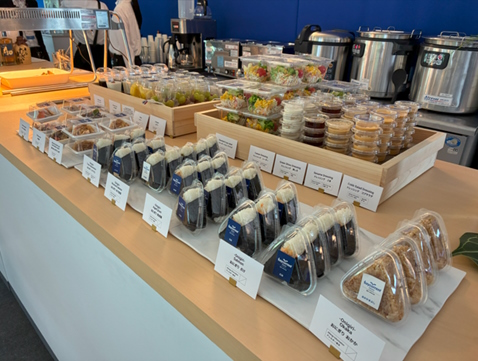 Terrace Suiteなどで観戦しながらでも飲食ができるよう、カップに入ったお食事やおにぎり、パン、デザートなど、ホテルの朝食バイキングさながらのラインナップとクオリティを追求しました。