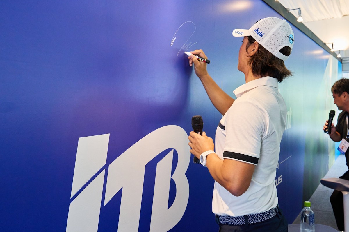 この日はホールアウト直後の石川遼選手をご招待。石川選手が登場すると、会場の熱気が一気に高まり、大きな歓声と拍手が沸き起こりました。