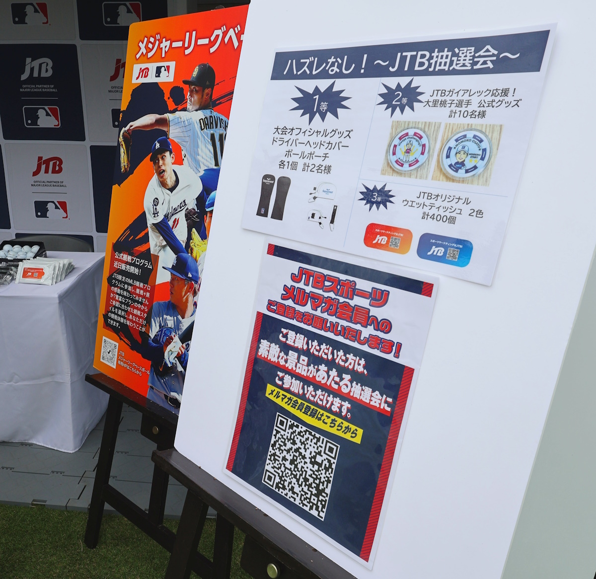 協賛企業のブースが並ぶファンゾーンでは、JTBもブースを設置。「JTBスポーツメルマガ」の登録をして頂いた方の中から、抽選で大会公式グッズやJTBガイアレックのゴルフアンバサダーである大里桃子プロのグッズが当たる抽選会を実施しました。
