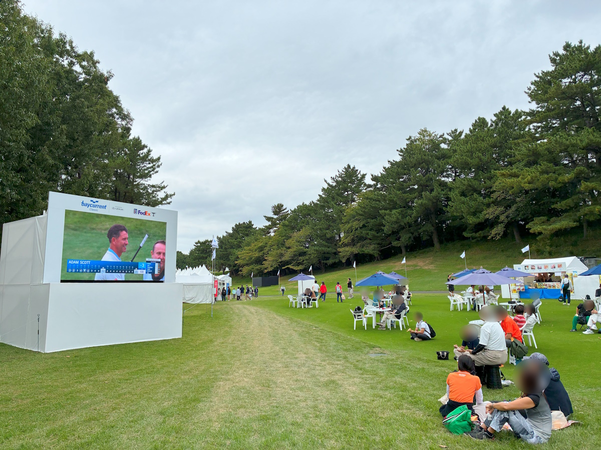 広々としたグリーン上で中継画面を見つつ、名店グルメを味わいながらのんびり観戦している方も多くいらっしゃいました。