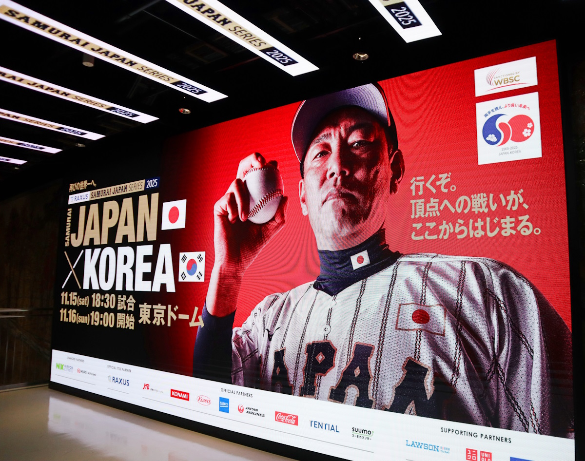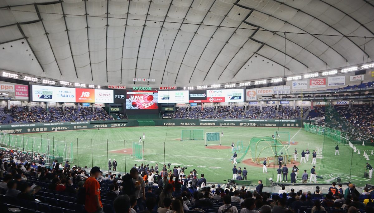 再びの世界一を目指すため、いよいよ再始動した野球日本代表「侍ジャパン」。11月15日・16日に強化試合として「ラグザス 侍ジャパンシリーズ2025 日本 vs 韓国」が東京ドームで行われました。伝統の日韓戦ということもあって、2日間とも4万人を超えるファンが集結、「侍ジャパン」への注目度の高さが感じられました。JTBはオフィシャルパートナーとして、スタジアム内で抽選会を行うなど特別なイベントも盛りだくさん!熱気に包まれた強化試合初日の観戦レポートをお届けします。