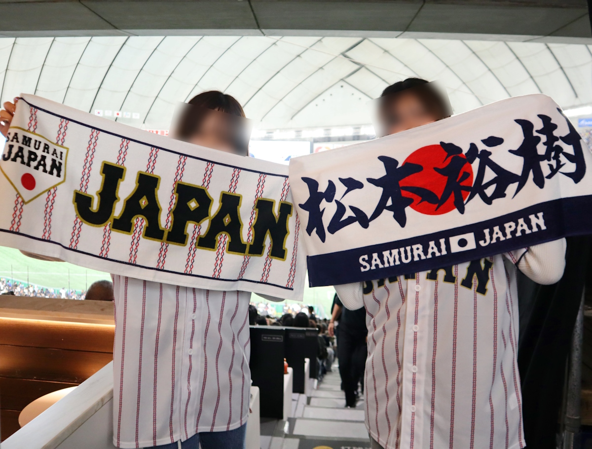 久々の「侍ジャパン」の試合とあってやはりユニフォームを着用しているファンの姿が!日韓それぞれメガホンや推しの選手タオルなど応援グッズを持ったファンがたくさんいました。