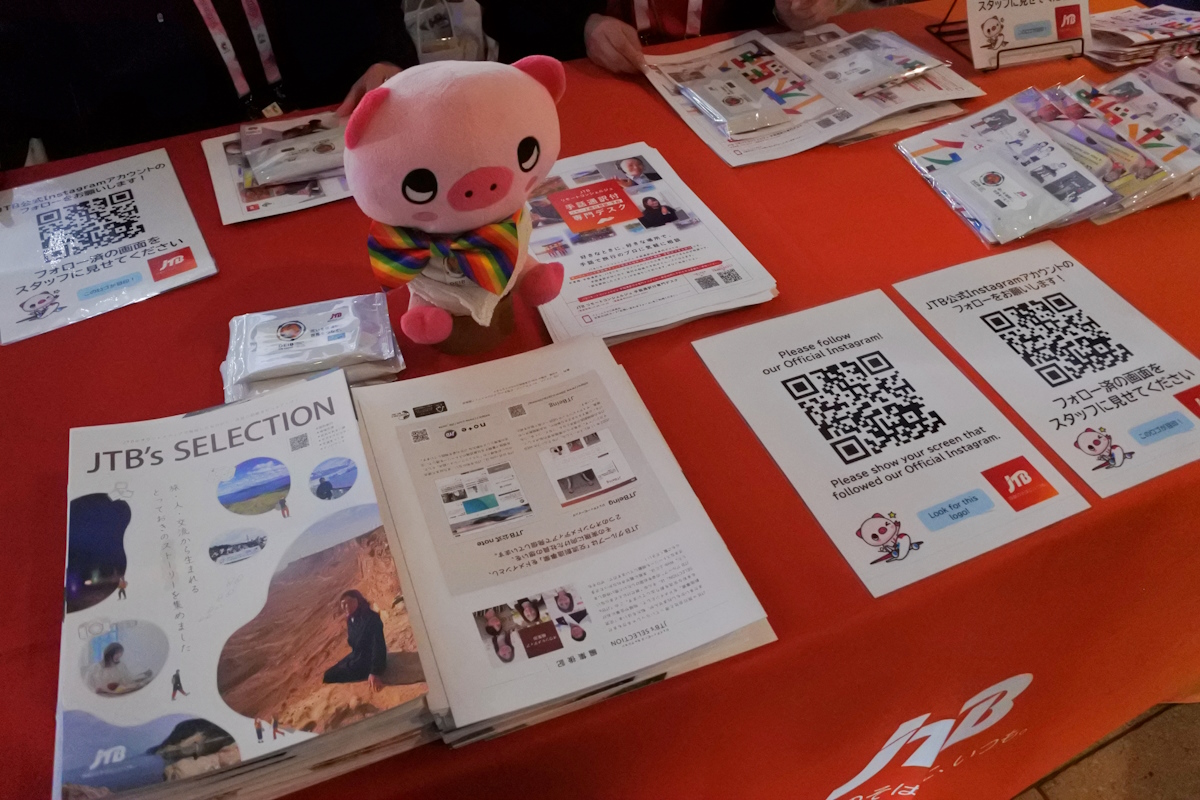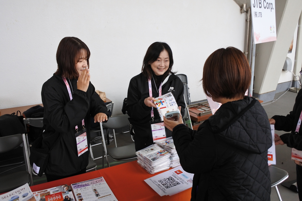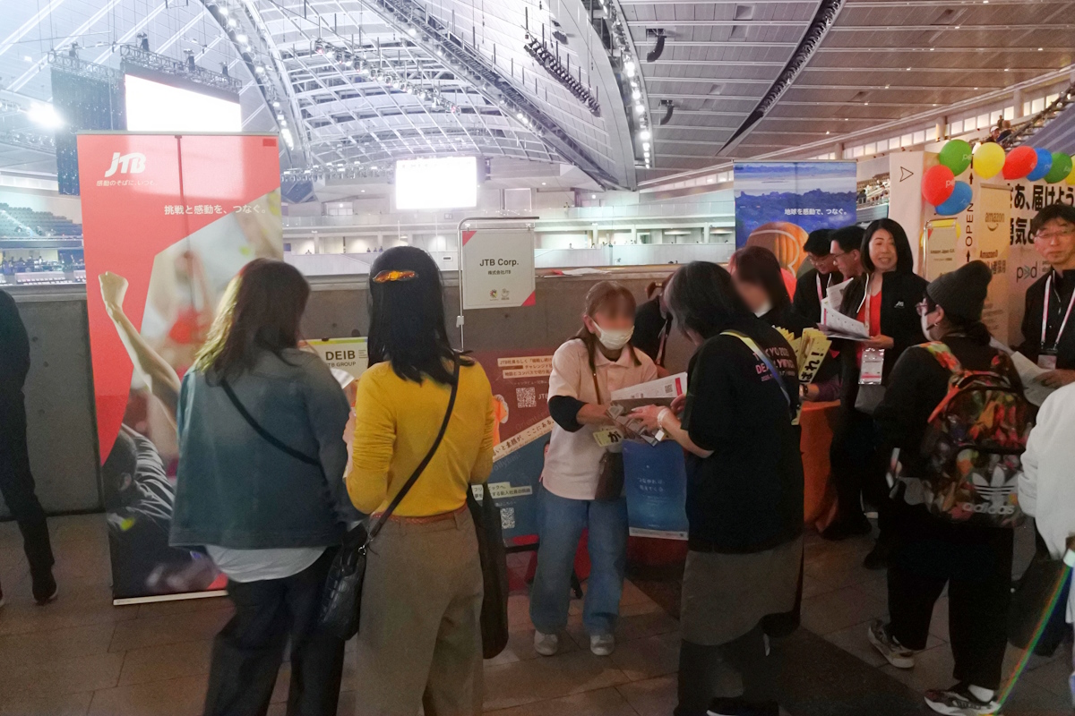 あっという間にブースの前は大混雑! 皆さん、JTBの取り組みにも興味を持ってくださっているようです。
