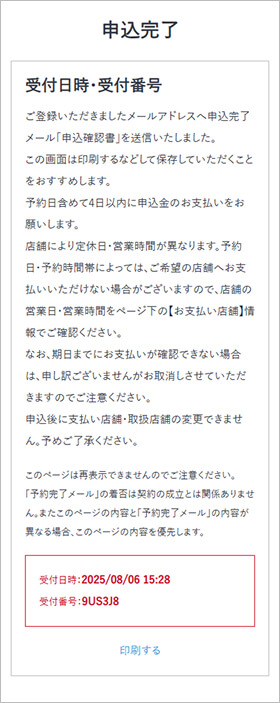 ※予約完了後はお支払い店舗の変更はお受けできません。