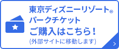 ※こちらのバナーからパークチケットを購入される場合、東京ディズニーリゾート・オフィシャルウェブサイト内での決済となります。その他商品との一括決済はできません。また、パークチケットの変更を希望される場合は、購入先でのみ変更が可能です。※パークチケットの重複購入にご注意ください。