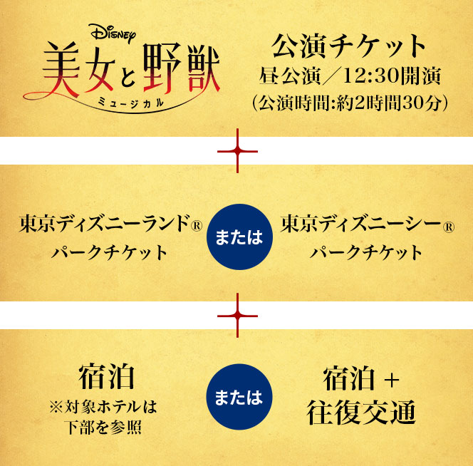 『美女と野獣』の昼公演観劇チケットおよび東京ディズニーランド®または東京ディズニーシー®