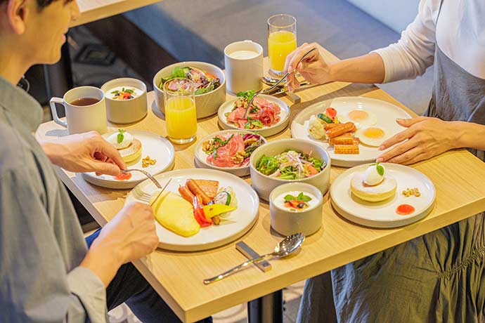 シェフサービスのオムレツなどホテルこだわりの「美味と健康の朝食ビュッフェ」