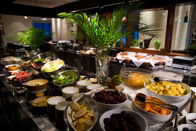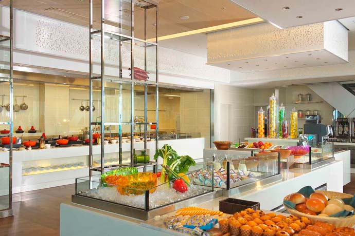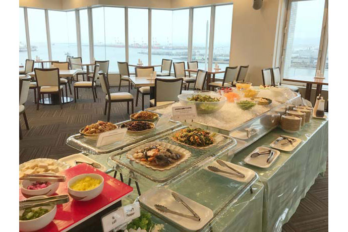 種類が豊富で大人気の朝食ビュッフェはガラス張りで開放感ある19階レストランで