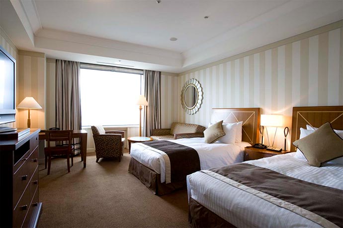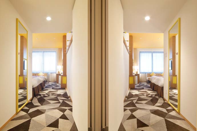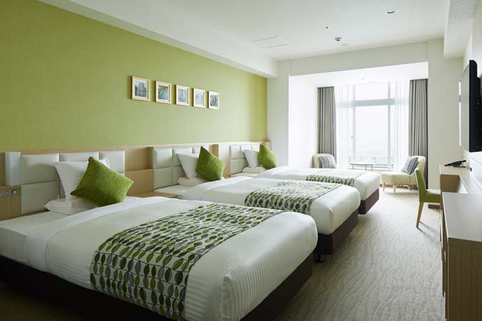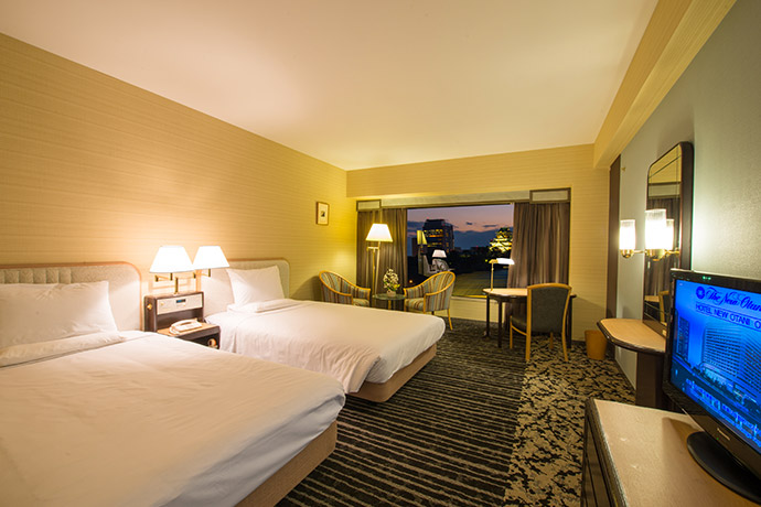 ツインルーム、ファミリールーム、和室など、様々な種類の客室