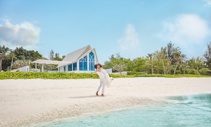 美しい白砂のビーチが続くタモンの中心地。グアムを代表する一流ホテル「ハイアット リージェンシー グアム」内に佇むジュエル・バイ・ザ・シー。チャペルの扉を開けると、目の前の海に向かうバージンロード、そしてスワロフスキー社製の壮大なシャンデリアに目を奪われます。2025年2月には、シャンデリアをより美しく映し出す「ピュアホワイト」のバージンロードにリニューアル。海と空のブルー、ピュアホワイトの輝き満ちるチャペルに生まれ変わりました。挙式後は、チャペル横にある「ビーチガーデン」で南国の風を感じるプライベートタイム。さらに、目の前に広がる美しいビーチで写真撮影も。ふたりが寄り添うロマンティックなシーンも、ゲストと一緒に賑やかなシーンも、あらゆるシーンが美しく輝きます。パーティはハイアットクオリティの上質なコース料理で、ホテル内の専用プライベートルームで南国を感じるトロピカルガーデンの景色に囲まれながら大切な人たちと一緒に過ごす特別なひとときを。