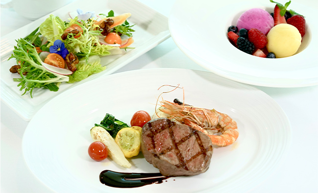 パーティメニューT×2名様分付き(62,000円相当)※大人6名様以上でパーティお申し込みの場合。 - 豊富なフォトバリエーション!挙式会場周辺フォト(大階段・回廊・セレブレーションガーデン)とダウンタウンフォトの両方が叶います。
