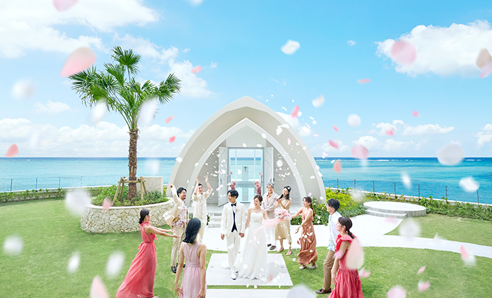 那覇空港から車で約20分の好立地にある、琉球ホテル&リゾート名城ビーチ。優雅な滞在がコンセプトの大型リゾートホテルを舞台に、美しい名城ビーチをのぞむ贅沢なウエディングが叶います。2025年5月30日からは華やかにアップデートされたチャペルフラワーが新しい人生のはじまりを彩ります。沖縄の自然や伝統文化を堪能できる”新琉球エリア”ならではのフォトツアーも必見です。