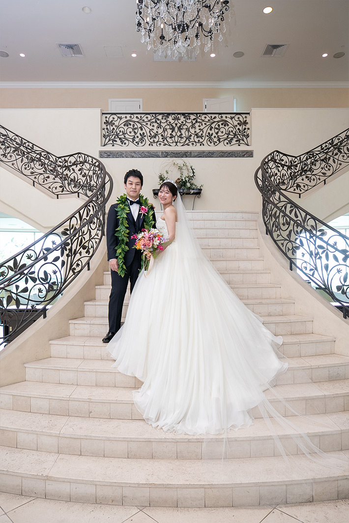 シンプルなデザインでボリュームのあるウエディングドレス選びました。カジュアルなドレスもハワイらしいですが、もともと自分が着たいと思っていたイメージ通りのドレスを着ることができてよかったです。