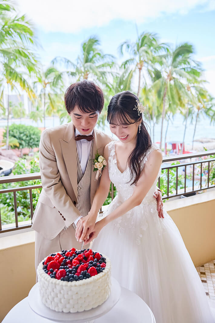 ハワイの心地よい気候の中みんなでリゾートウェアを着て集まることはなかなかないため、とても良い思い出になりました。私たちは家族だけの少人数の式だったため、終始アットホームな空気が流れており、食事もゆっくりとみんなで楽しむことができたのがよかったです。また、参列者がみな顔馴染みだったこともあり、私たちがいないところでもみんなで楽しい時間を過ごしていたようでした。両家族とも式を楽しんでくれたのはもちろんのこと、ハワイ旅行自体もかなりenjoyしたようで、私たちとしても嬉しかったです。