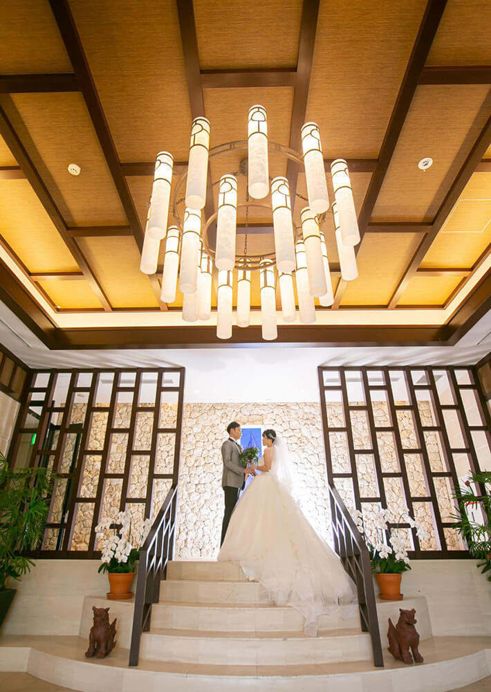 当初はハワイでご予定いただいておりましたが、状況が厳しくなり、沖縄での挙式をご相談いただきました。たくさんお悩みいただいたと思うのですが、いつも明るいおふたりで、かえって励まされる思いでした。おふたりの雰囲気にぴったりの会場をお選びいただいたと思います。